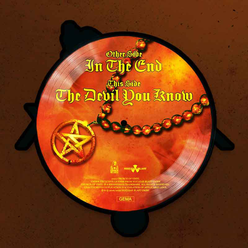 Anthrax is an American heavy metal band from New York City, formed in 1981 by rhythm guitarist Scott Ian and bassist Dan Lilker. The group is considered one of the leaders of the thrash metal scene from the 1980s and is part of the "Big Four" of the genre, along with Metallica, Megadeth and Slayer. The Anthrax picture shape release contains 2 songs a) In The End and b) The Devil You Know. Taken from the Album “Worship Music” from 2011. Special shape vinyl with inlay, strictly limited to only 666 copies / hand numbered 001/666.