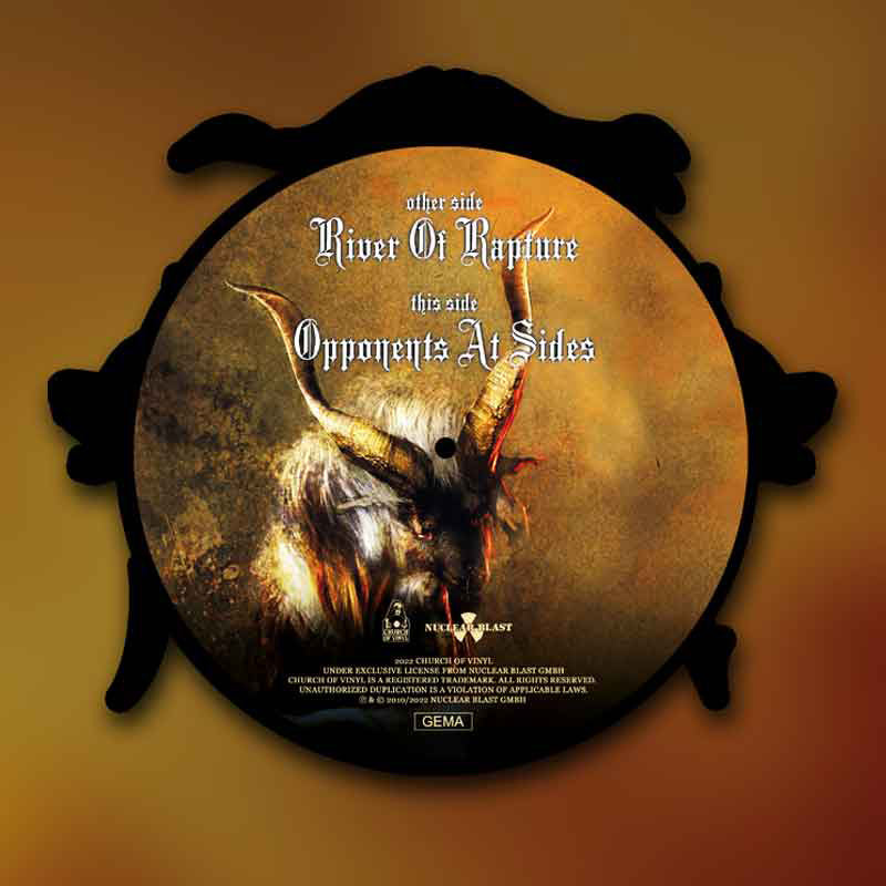 Death Angel was formed in the San Francisco Bay Area, California, in 1982 by cousins Rob Cavestany (lead guitar, backing vocals), Dennis Pepa (lead vocals, bass), Gus Pepa (rhythm guitar), and Andy Galeon (drums) -- all of Filipino descent. After considering a number of different names for the band, including Dark Fury, Cavestany and D. Pepa settled on the name Death Angel after coming across a book by that title in a book store.The Death Angel picture shape release contains 2 songs a) River Of Rapture and b) Opponents At Sides. Taken from the Album “Relentless Retribution” from 2010. Special shape vinyl with inlay, strictly limited to only 350 copies / hand numbered 001/350.
