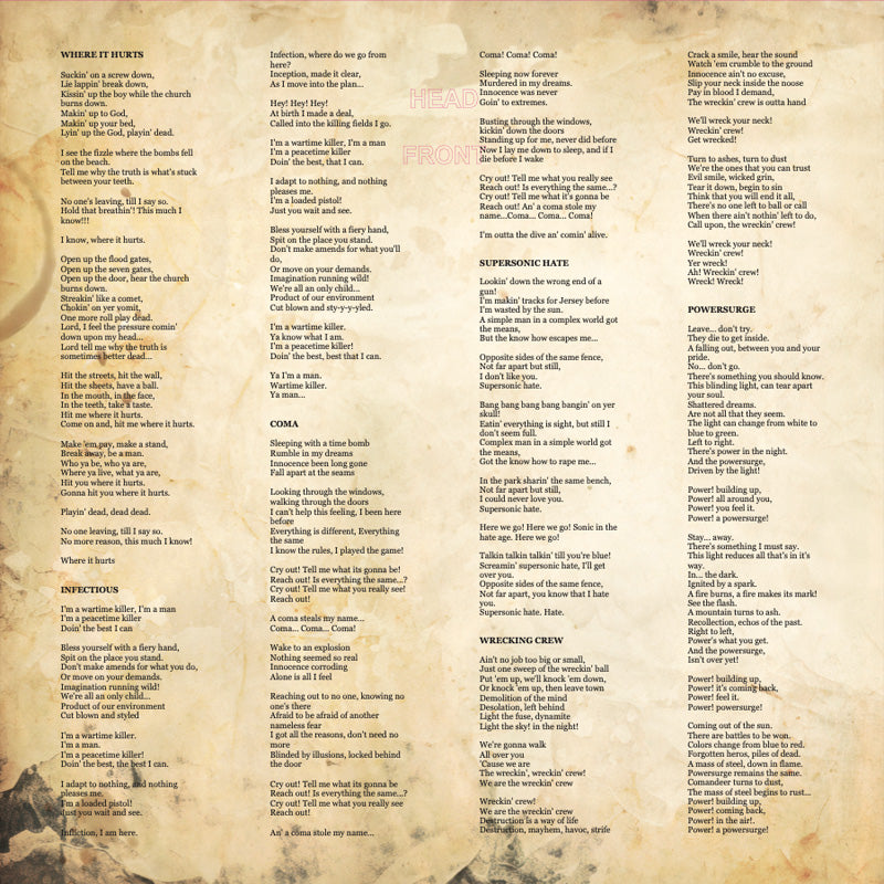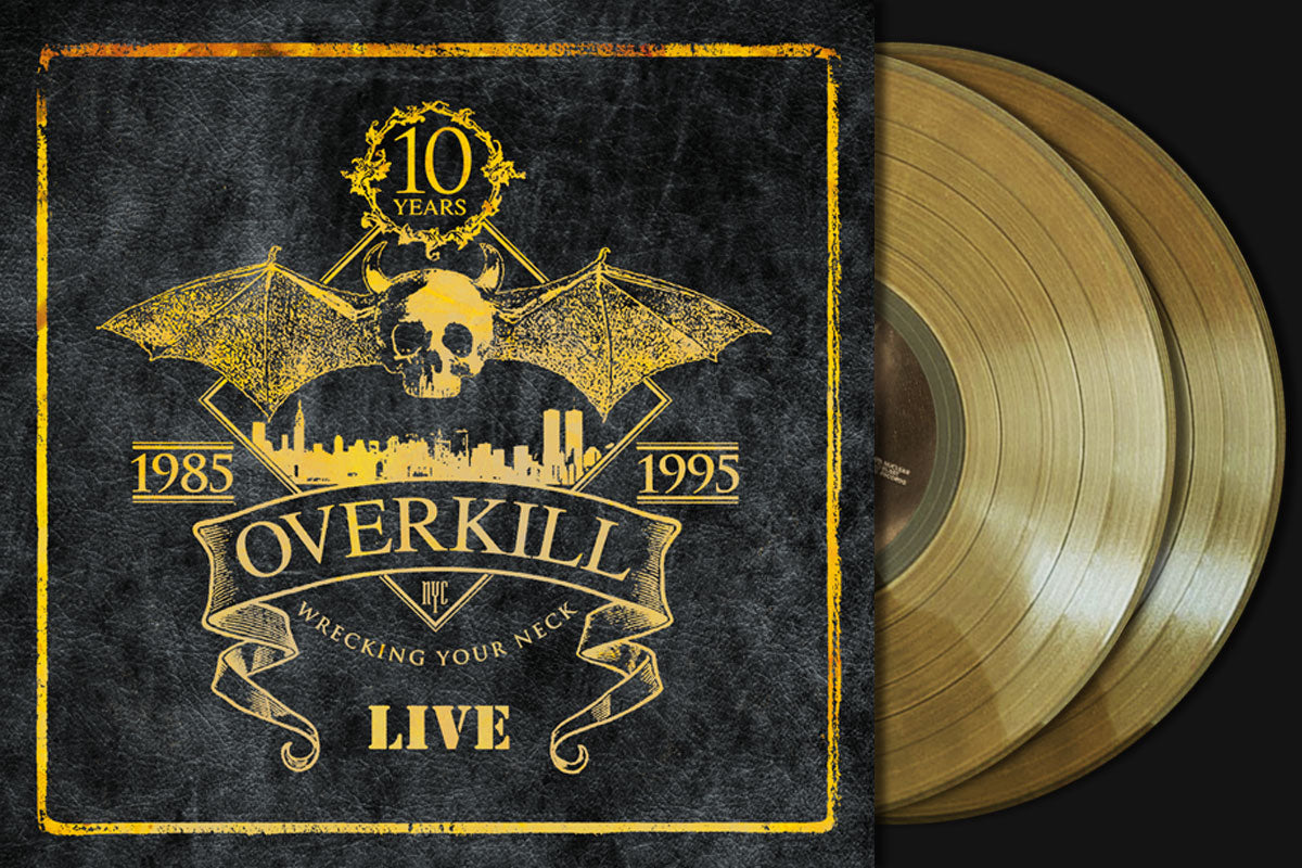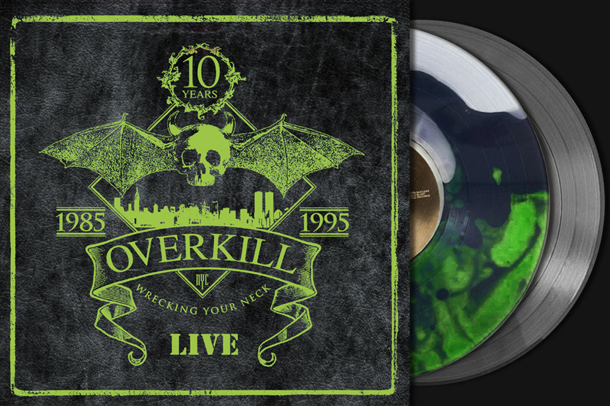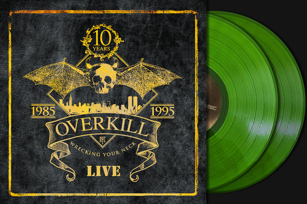 OVERKILL – WRECKING YOUR NECK 2LP! There will be 5 different versions of the LP as following: liquid1 in green cover (25 copies / green-black, 2nd LP clear), liquid2 in green cover (25 copies / blood filled, 2nd LP clear), splatter in green cover (100 copies), green vinyl in gold cover (175 copies), beige vinyl in gold cover (175 copies).