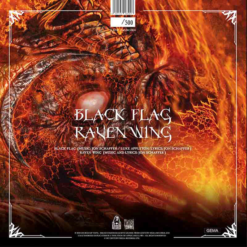 Iced Earth is an American heavy metal band formed in Tampa, Florida, and currently based in Columbus, Indiana. They were formed in 1984 under the name the Rose, then Purgatory, by guitarist and main songwriter Jon Schaffer and original drummer Greg Seymour. Iced Earth released their debut album in 1990.The Iced Earth picture shape release contains 2 songs a) Black Flag and b) Raven wings. Taken from the Album “Incorruptible” from 2017. Special shape vinyl with inlay, strictly limited to only 500 copies / hand numbered 001/500. “When a new Iced Earth album arrives, you can trust it will include three things: bombast, bravado and triplets“