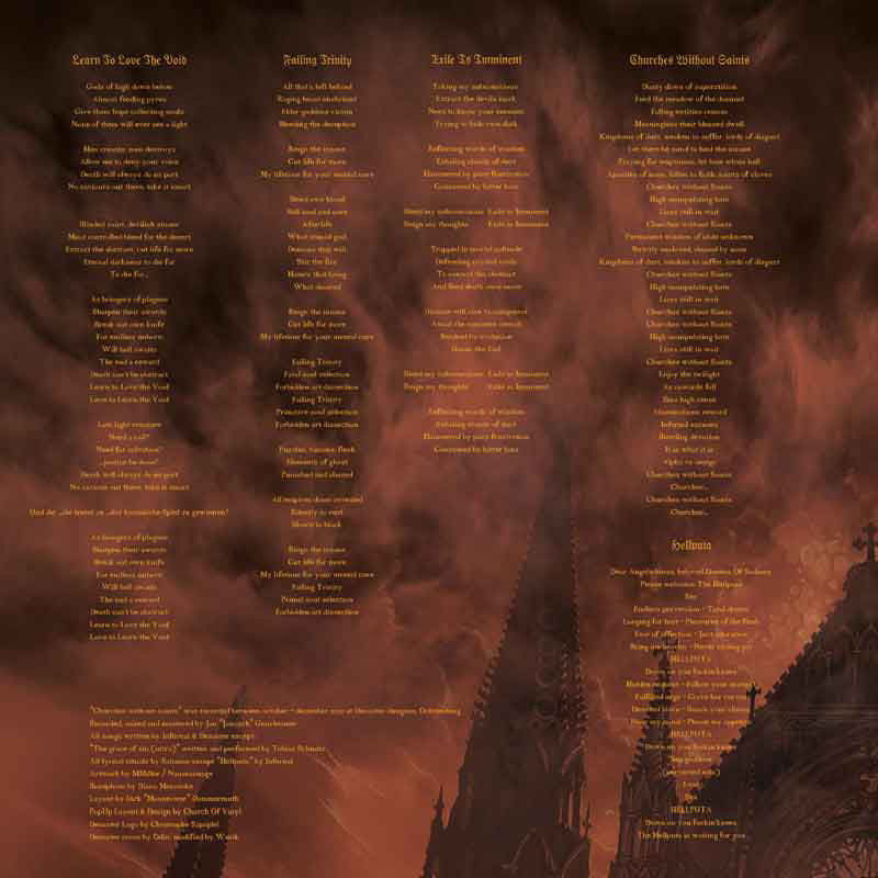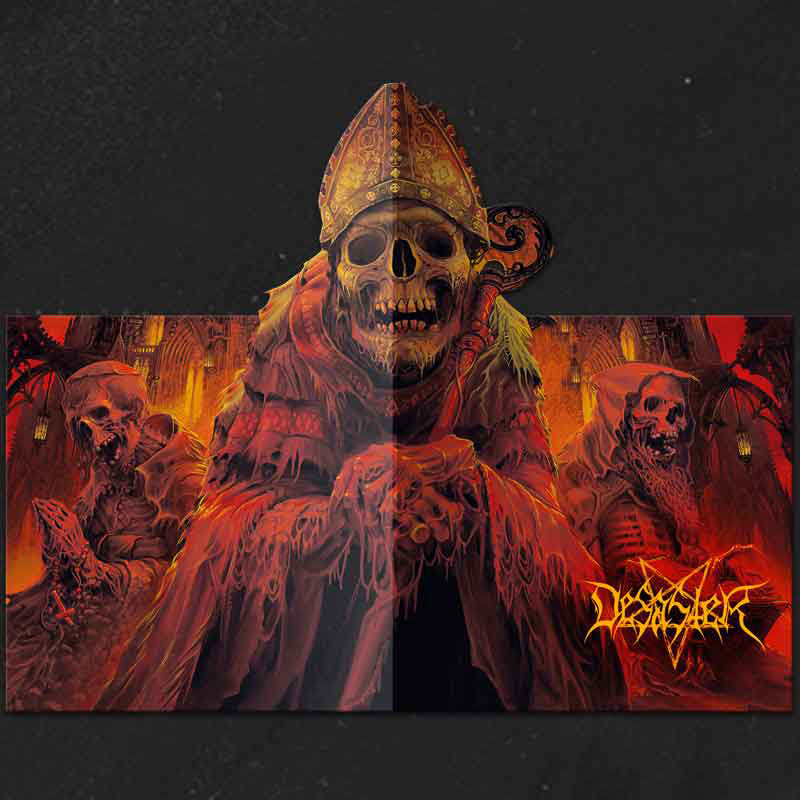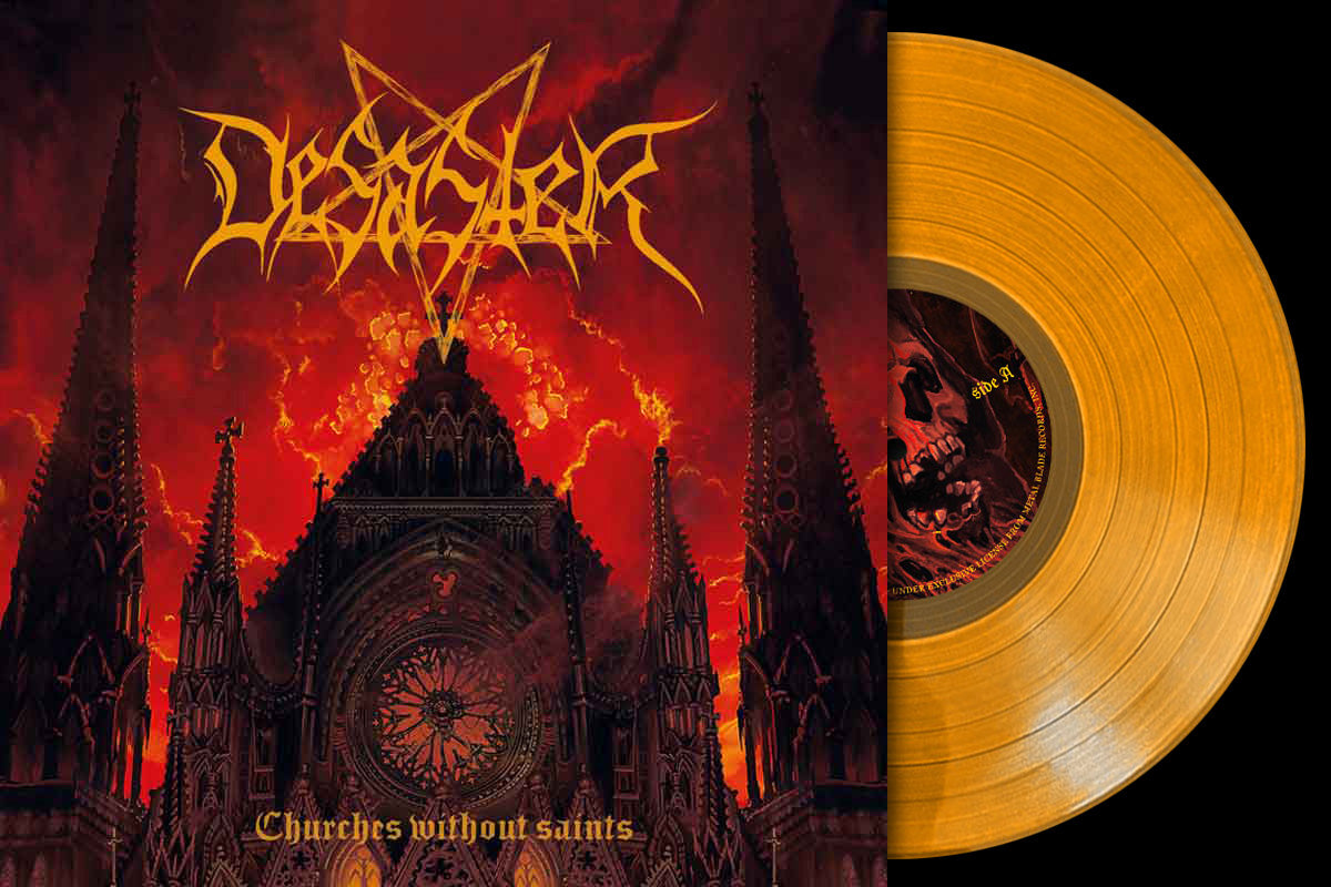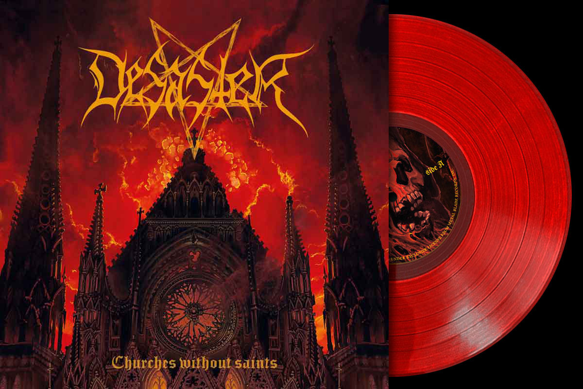 Desaster are a German black/thrash metal band formed in Koblenz in 1988. When Desaster formed, they were inspired by bands like Venom, Hellhammer and Destruction; the name of the band comes from the Destruction song "Total Desaster". The album “Churches Without Saints” was released on vinyl before in 2021 by Metal Blade Records. The Cover artwork wow, without hesitation we went for a Pop-Up re-release, strictly limited to 500 copies (250 orange vinyl and 250 red vinyl) Hand numbering 001/500 and printed inner sleeves – hell yeah! After the intro The Grace of Sin, Churches Without Saints delivers exactly what you would expect from a good Thrash album, an exhilarating driving pace that is well convoluted in its direction switching, from the first actual track Learn to Love the Void through to the final track Endless Awakening.