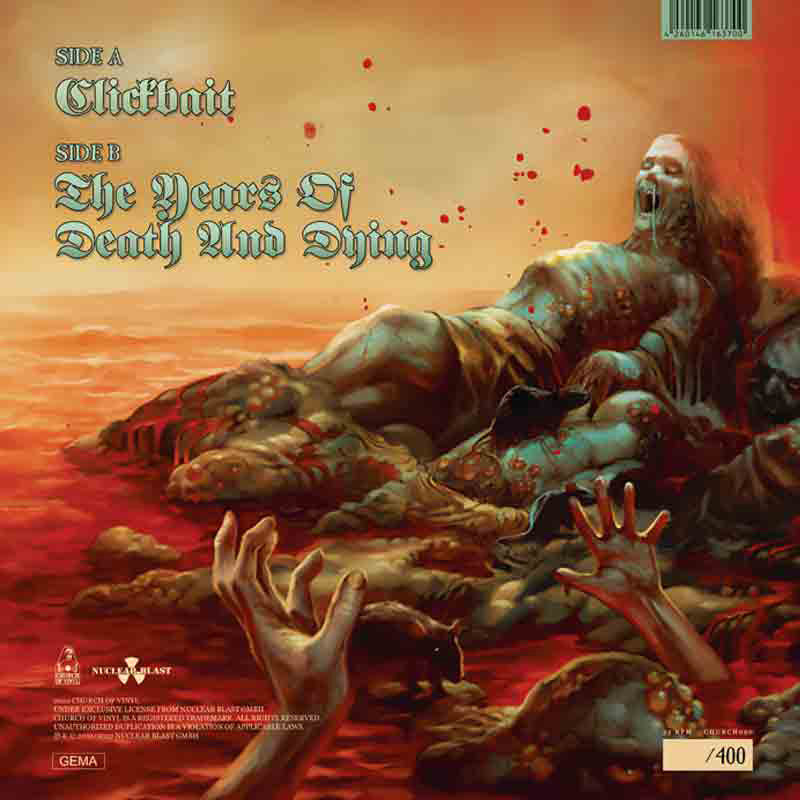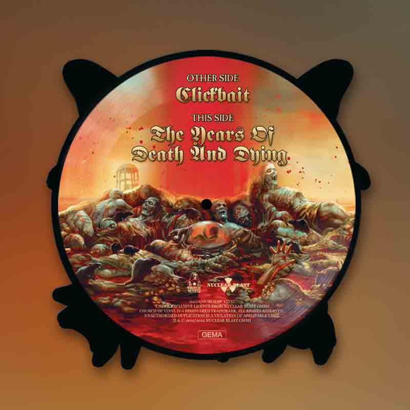 Exodus is an American thrash metal band formed in 1979 in Richmond, California.Along with Metallica, they are often credited as pioneers of the Bay Area thrash metal scene, and have been referred to as one of the region's so-called "big six" alongside Testament, Death Angel, Lååz Rockit, Forbidden and Vio-lence.The Exodus picture shape release contains 2 songs a) Clickbait and b) The Years Of Death And Dying. Taken from the Album “Persona Non Grata” from 2021 released by Nuclear Blast. Special shape vinyl with inlay, strictly limited to only 400 copies / hand numbered 001/400.