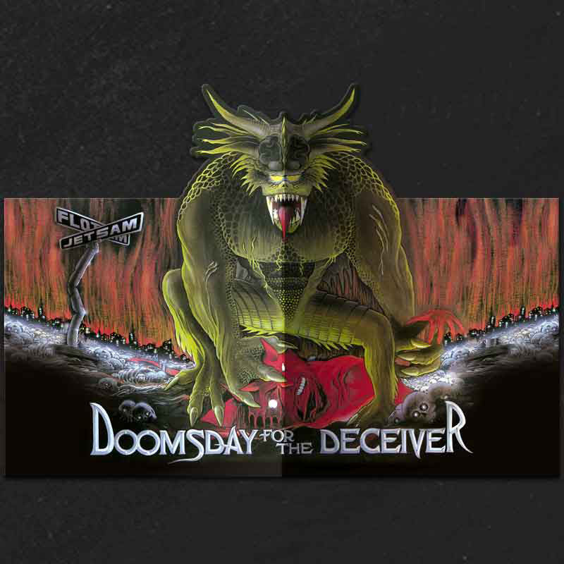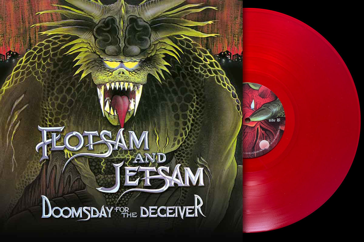Flotsam and Jetsam is an American thrash metal band that was formed in Phoenix, Arizona, in 1981. Before settling on its current name in 1984, the band had existed under three different names, Paradox, Dredlox and Dogz. The Flotsam & Jetsam Doomsday For The Deceiver re-release (Pop-Up) comes in the following versions: 001-030 liquid filled, 031-200 splatter vinyl, 201-600 green vinyl and 601-999 red vinyl. Strictly limited to a total number of 999 copies, hand numbered. “Though a little rough in the production department, Flotsam & Jetsam's first album, Doomsday for the Deceiver, attempts both short bursts of thrashing intensity ("Desecrator," "Iron Tears") as well as extended, multi-part epics ("Metalshock" and the title track).”