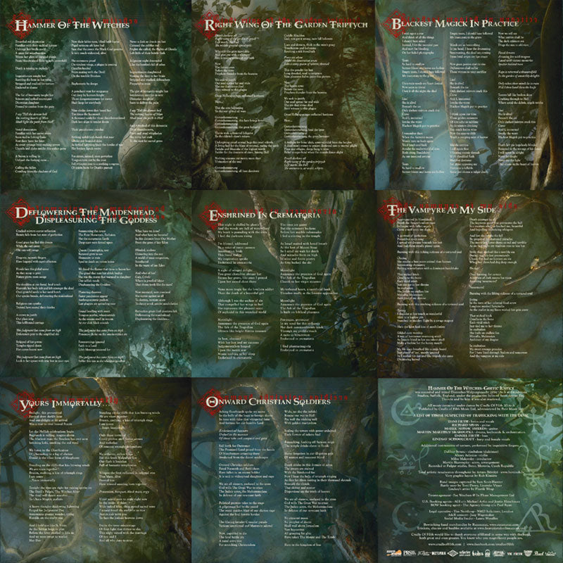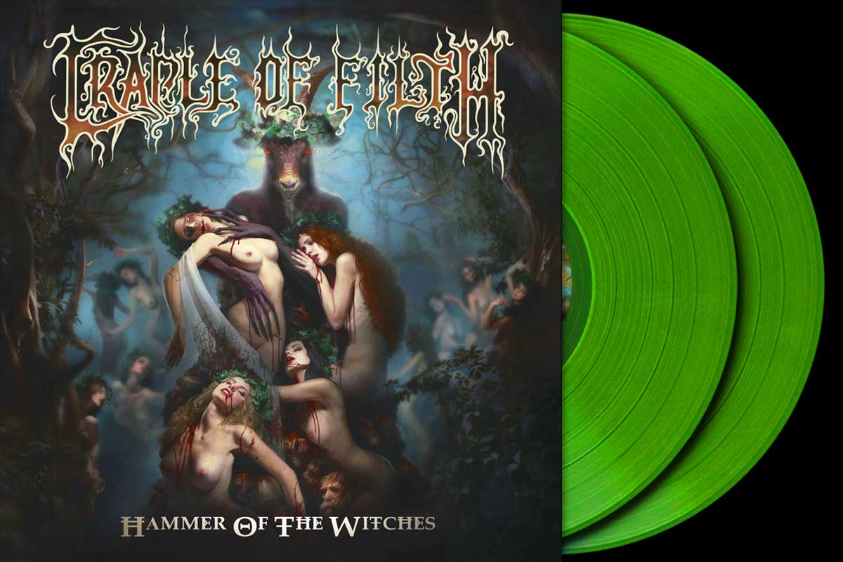 Cradle Of Filth – Hammer Of The Witches PopUp 2LP! There will be 4 different versions of the LP as following: liquid (40 copies / first LP liquid second LP clear), splatter vinyl (70 copies), blue vinyl (195 copies), green vinyl (195 copies).