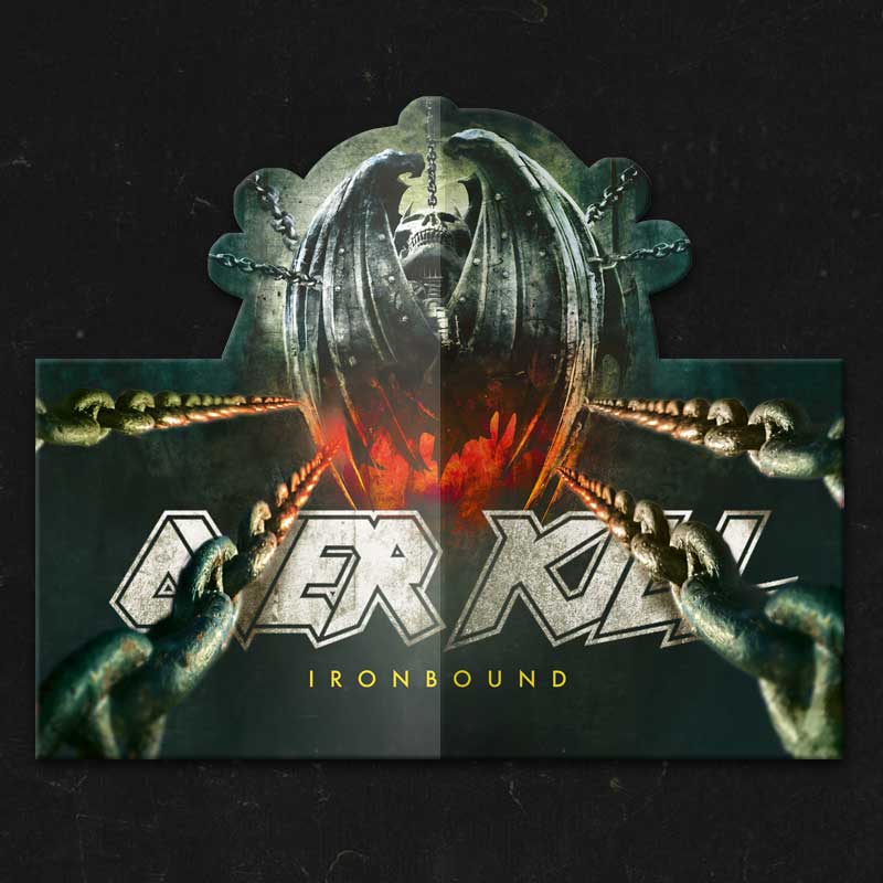 OVERKILL – IRONBOUND PopUp 2LP! There will be 4 different versions of the LP as following: liquid (40 copies / first LP liquid second LP clear), splatter vinyl (70 copies), yellow vinyl (195 copies), red vinyl (195 copies).