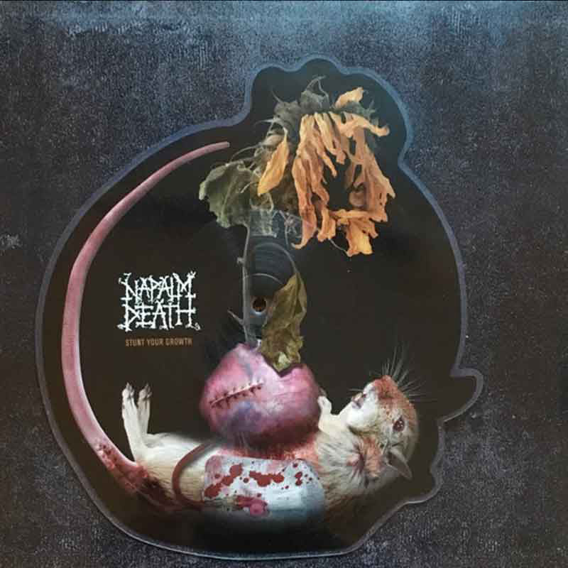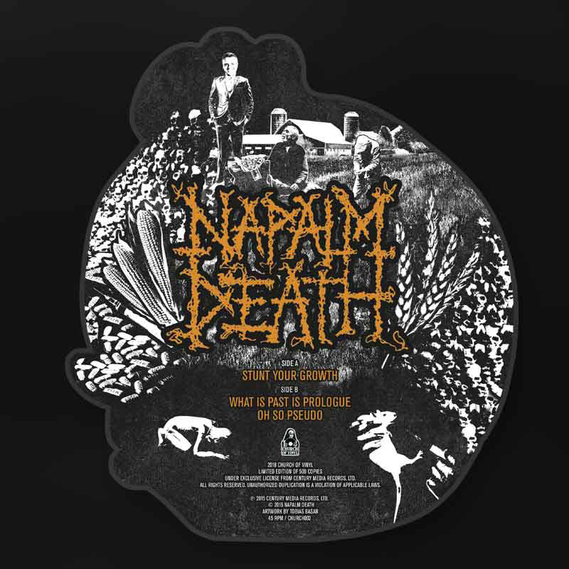 Napalm Death are an English grindcore band formed in 1981 in Meriden, West Midlands.The Napalm Death picture shape release contains 3 songs a) Stunt Your Growth and b) What Is Past Is Prologue / Oh So Pseudo. Taken from the Album “Apex Predator - Easy Meat” from 2015. Special shape vinyl with inlay, strictly limited to only 500 copies / hand numbered 001/500. “The Apex Predator-Easy Meat is a fantastic album that does not adhere to many troupes commonly found in grindcore and it is the better for it. The song structures are varied while still packing a punch, the riffs are memorable and hard hitting, the lyrics are acidic and socially-charged, and the vocals are electrifying” - DUE TO PRODUCTION PROCESS WITH CLEAR VINYL ALL NAPALM DEATH SHAPES ARE WARPED!!!